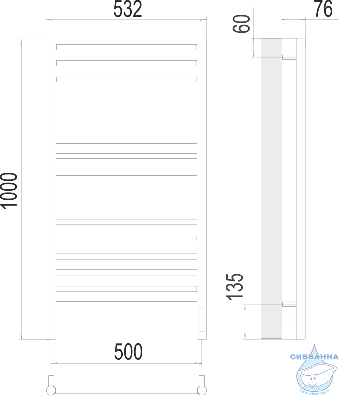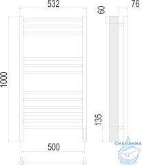 • Полотенцесушитель сухого типа с нагревательным кабелем