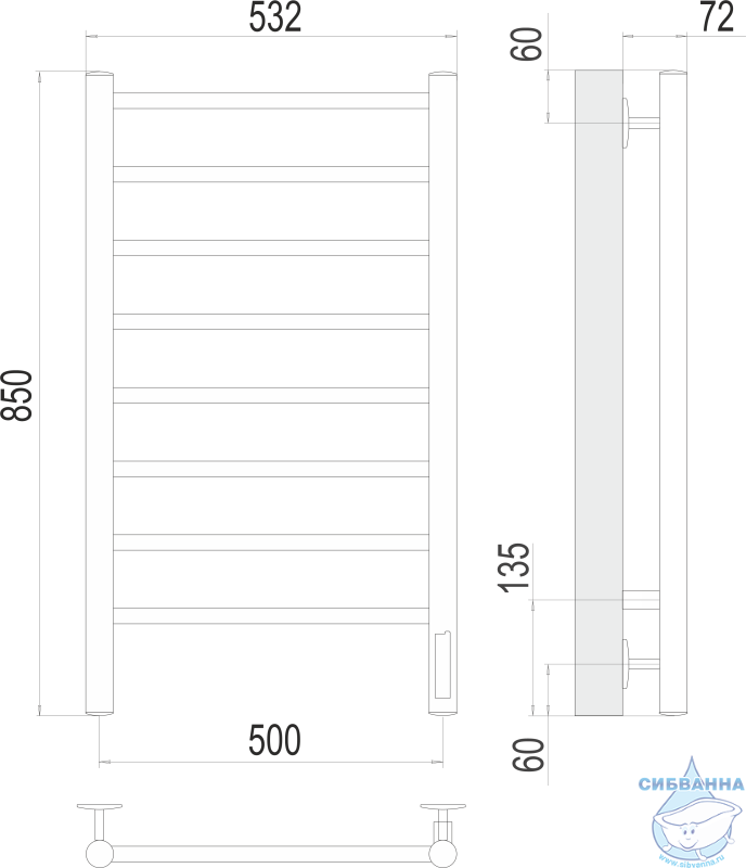 Полотенцесушитель электрический Terminus Аврора П8 50х85 (сатин)