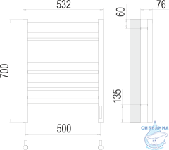 Полотенцесушитель электрический Terminus Аврора П9 50х70 (хром) (с возможностью скрытого подключения, подключение справа)