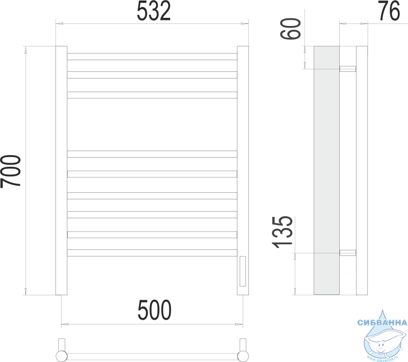 • Полотенцесушитель сухого типа с нагревательным кабелем