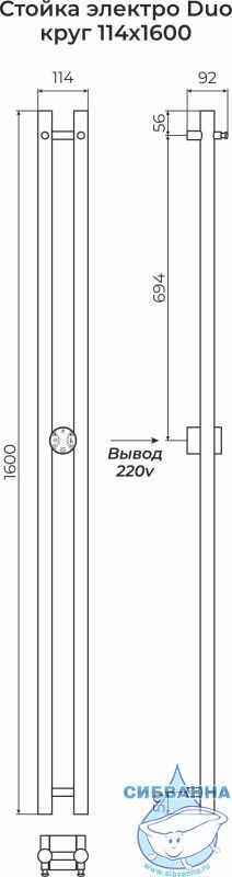 Полотенцесушитель электрический Terminus Стойка электро Duo круг (SENSOR QUICK TOUCH) 8х160 4670078528308