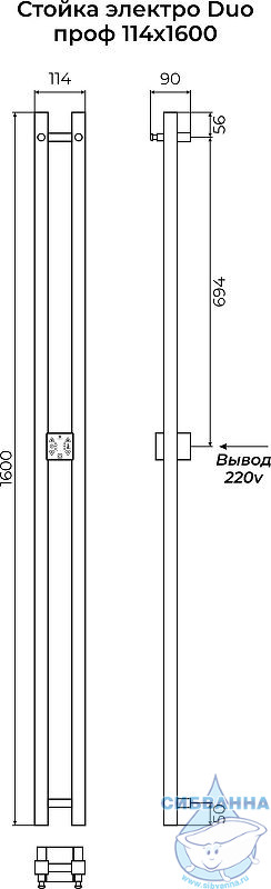 Полотенцесушитель электрический Terminus Duo 11х160 квадратная (с возможностью скрытого подключения) (белый матовый)