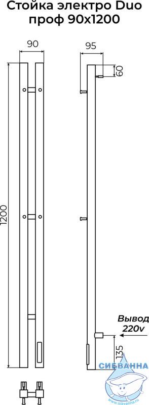 • Полотенцесушитель сухого типа с нагревательным кабелем