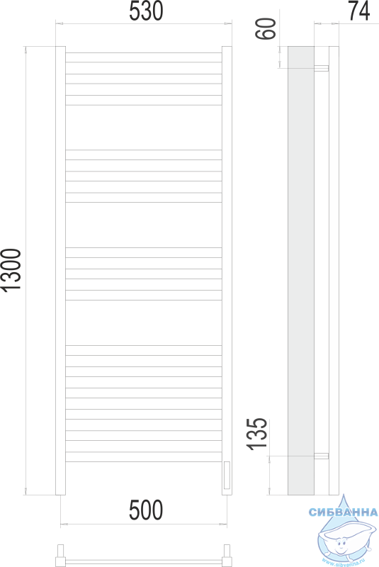 - Полотенцесушитель сухого типа с нагревательным кабелем