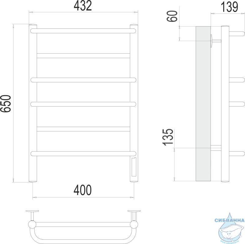 • Полотенцесушитель сухого типа с нагревательным кабелем