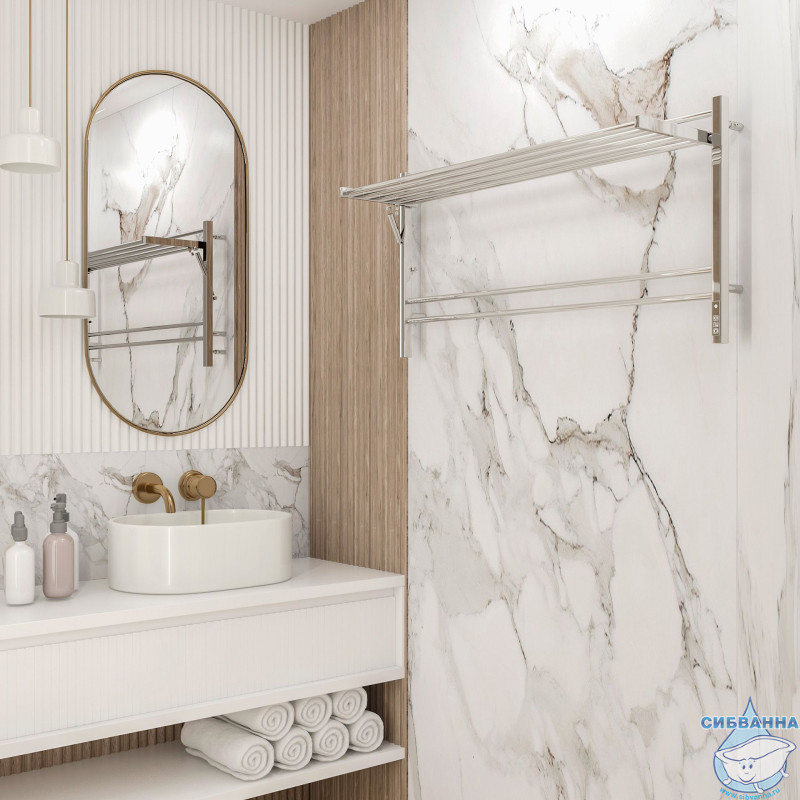 • Полка: увеличивает функциональность полотенцесушителя и улучшает эргономику организации хранения