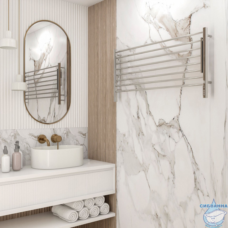 Электрический полотенцесушитель Terminus «Горизонт, с полкой, нержавеющая сталь» — это идеальное решение для вашей ванной комнаты. Он не только эффективно сушит полотенца, но и становится стильным акцентом в интерьере. Благодаря терморегулятору и диммеру 5-го поколения вы сможете настроить оптимальный уровень температуры, который будет поддерживать полотенцесушитель. Несколько уровней температурного режима позволят вам выбрать наиболее комфортные условия. Этот полотенцесушитель относится к энергоэффективным изделиям с малым потреблением электроэнергии. Нагревательный элемент — запатентованная технология «Сухой ЕвроТЭН». Она обеспечивает самую высокую степень защиты от влаги и пыли (II класс безопасности), а также защиту от замерзания и перегрева. Экономичный расход электроэнергии позволяет снизить затраты на электричество. Полотенцесушитель изготовлен методом роботизированной лазерной сварки. Этот метод гарантирует стойкость и эстетичность шва, максимальную прочность и герметичность изделия. Вы можете быть уверены в надёжности и долговечности полотенцесушителя Terminus. Приобретая электрический полотенцесушитель Terminus «Горизонт, вы получаете не только функциональное, но и стильное украшение для вашей ванной комнаты. Он станет незаменимым помощником в быту и подарит вам комфорт и уют.