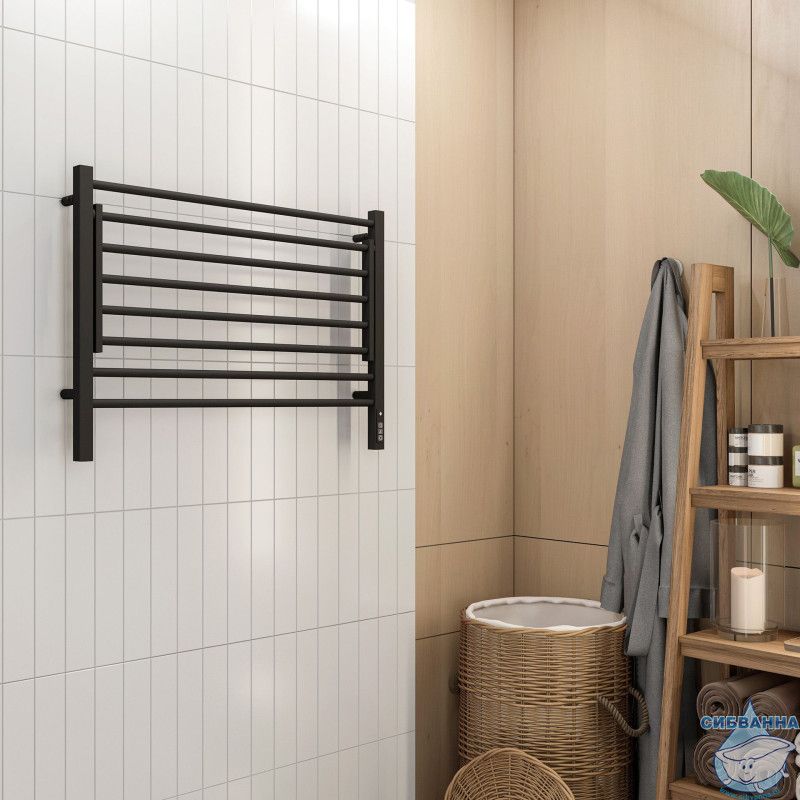 Полотенцесушитель электрический Terminus Горизонт П8 60х80 (с возможностью скрытого подключения, подключение справа) (черный муар)