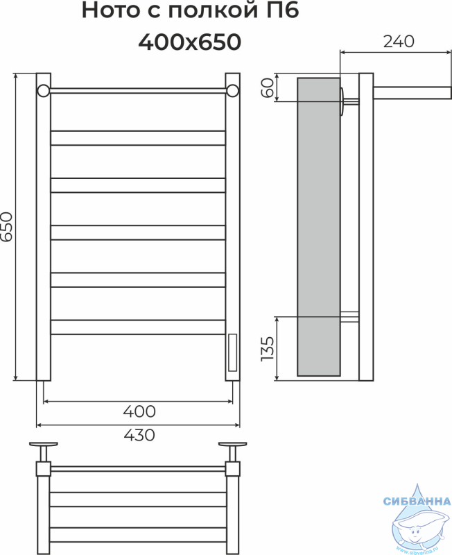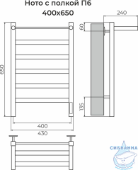 Полотенцесушитель электрический Terminus Ното П6 40х65 с полкой (с возможностью скрытого подключения, подключение справа)