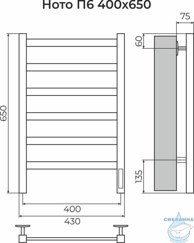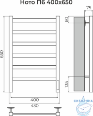 Полотенцесушитель электрический Terminus Ното П6 40х65 (с возможностью скрытого подключения, подключение справа)