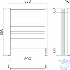 Полотенцесушитель электрический Terminus Ното П6 50х65 (с возможностью скрытого подключения, подключение справа)