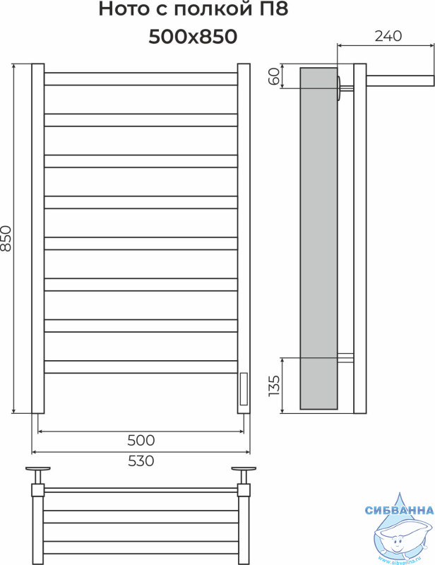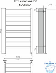 Полотенцесушитель электрический Terminus Ното П8 50х85 с полкой (с возможностью скрытого подключения, подключение справа)