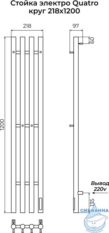 Полотенцесушитель электрический Terminus Quatro круглый 22х120 (хром)