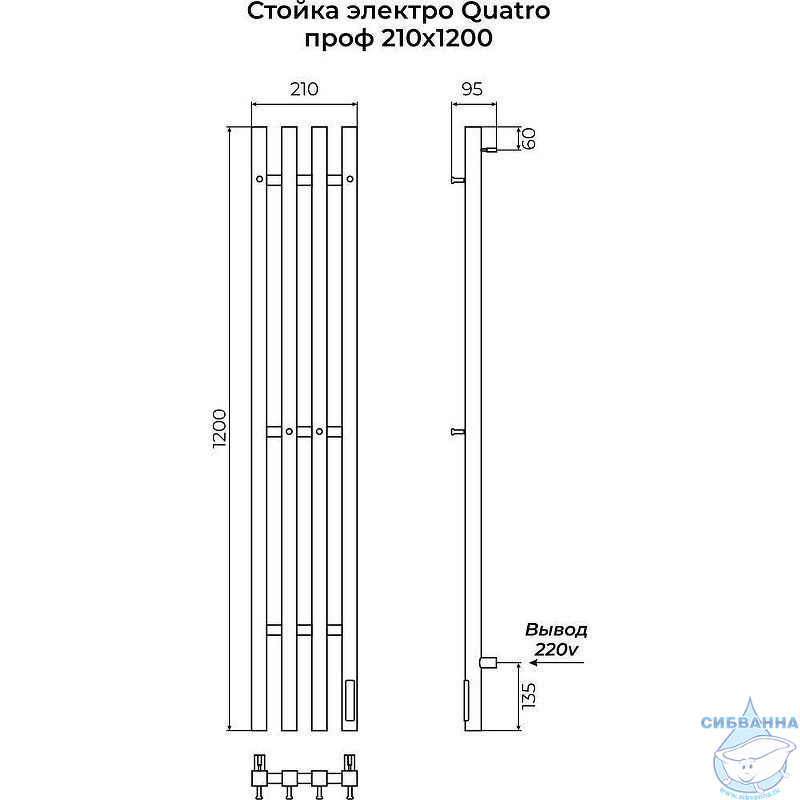• Полотенцесушитель сухого типа с нагревательным кабелем