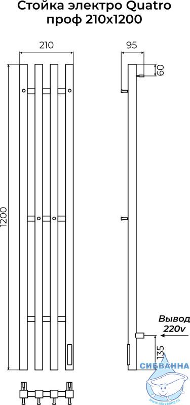 • Полотенцесушитель сухого типа с нагревательным кабелем