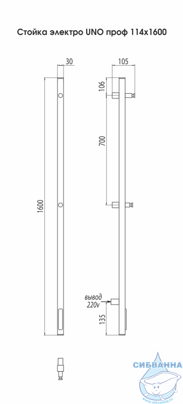 Полотенцесушитель электрический Terminus Стойка электро Uno профиль (SENSOR QUICK TOUCH) 3х160 4670078528391
