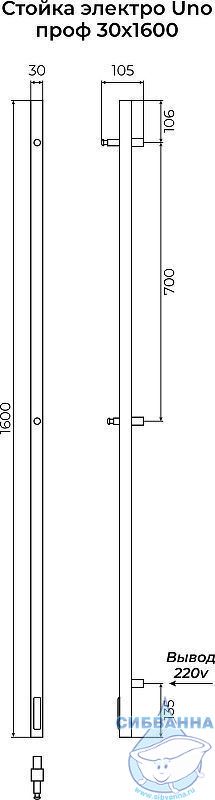 Полотенцесушитель электрический Terminus Стойка электро Uno профиль (SENSOR QUICK TOUCH) 3х160 4670078528391