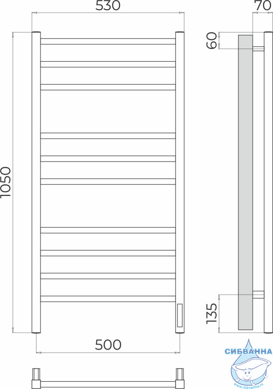 Полотенцесушитель электрический Terminus Ватикан П9 50х70 (с возможностью скрытого подключения, подключение справа)