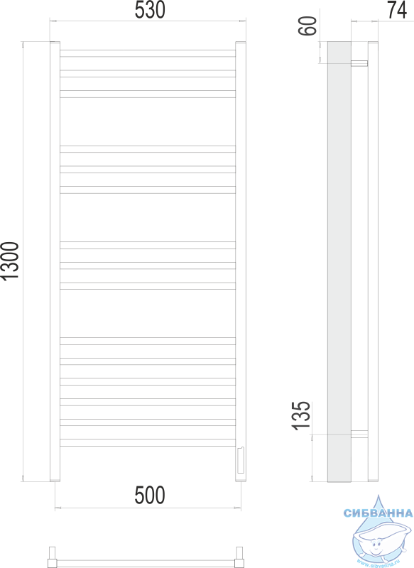 - Полотенцесушитель сухого типа с нагревательным кабелем