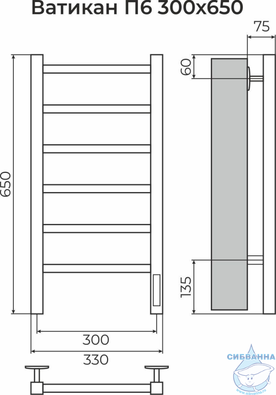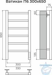 Полотенцесушитель электрический Terminus Ватикан П6 30х65 (подключение универсальное)(нержавеющая сталь)