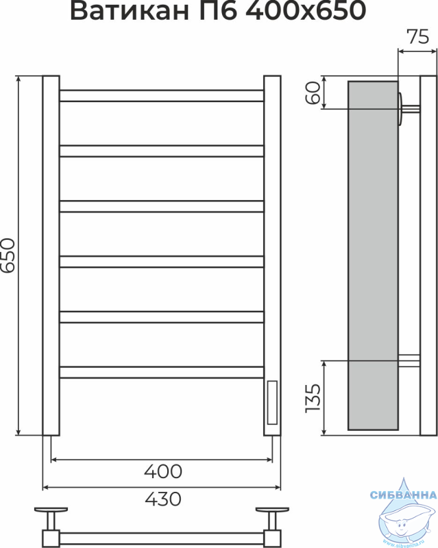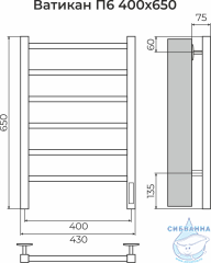 Полотенцесушитель электрический Terminus Ватикан П6 40х65 (подключение универсальное)(нержавеющая сталь)