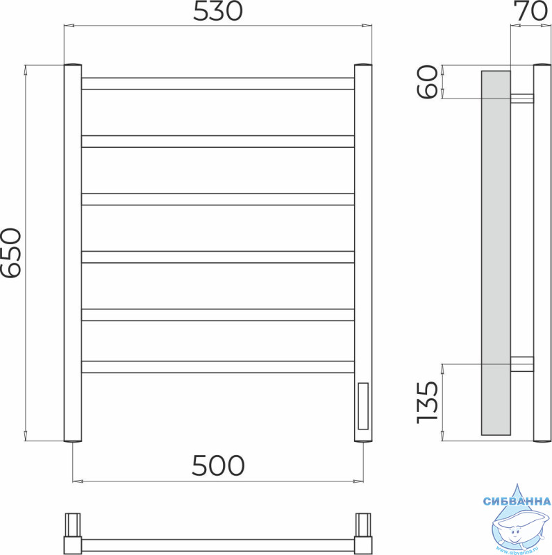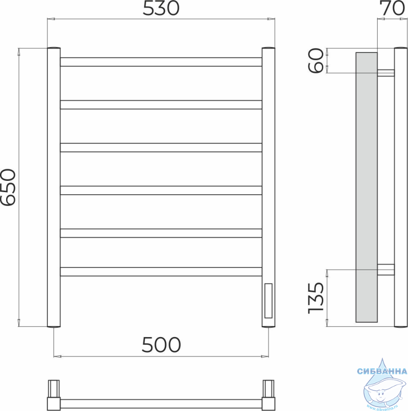 Полотенцесушитель электрический Terminus Ватикан П9 50х70 (с возможностью скрытого подключения, подключение справа)