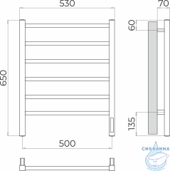 Полотенцесушитель электрический Terminus Ватикан П6 50х65 (подключение универсальное)(нержавеющая сталь)