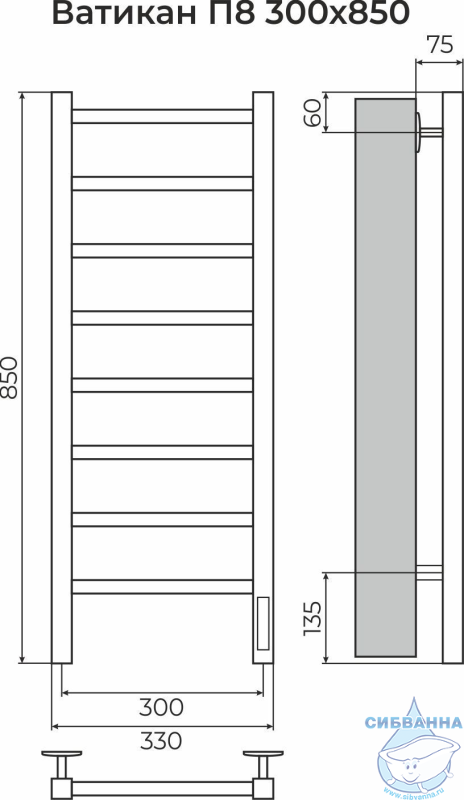 Полотенцесушитель электрический Terminus Ватикан П8 30х85 (подключение универсальное)(нержавеющая сталь)