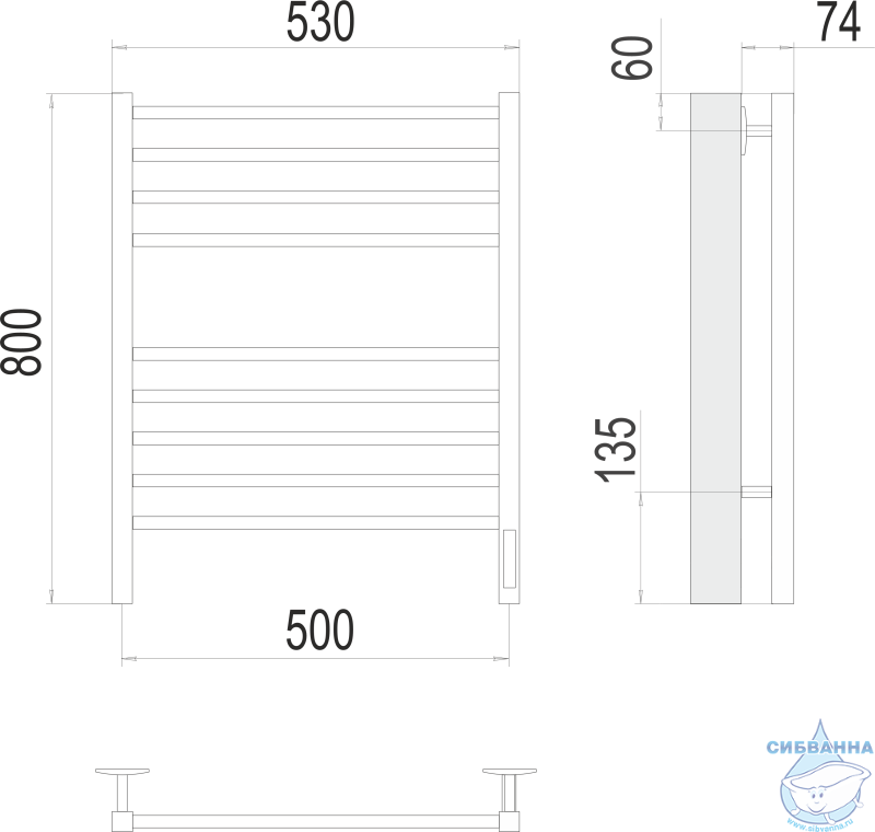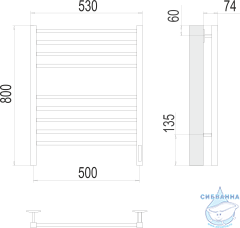 Тип полотенцесушителя: Электрический.Серия: Электрика эконом.Форма: Лесенка.Количество перекладин: 8.Группировка: 4-4.Материал полотенцесушителя: Конструкционная сталь. Дополнительные. Проводка: Скрытая + Кабель-вилка.Межосевое расстояние (мм): 500.Потребляемая мощность (Вт): 115.Теплоотдача (Вт): 220.Расположение блока управления: Справа.Площадь помещения (м²): 2. Габариты. Высота (мм): 800.Ширина (мм): 530.