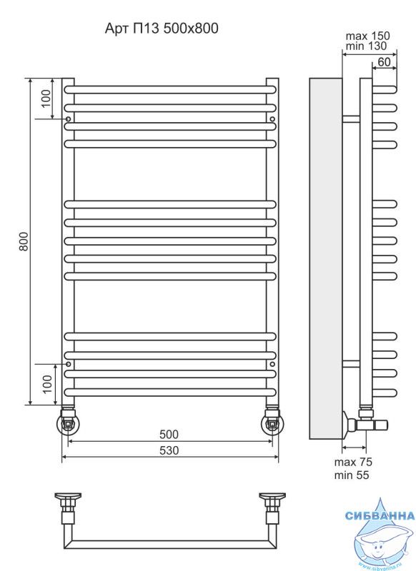 Полотенцесушитель водяной Terminus Арт П13 50х80 (нижнее подключение) (хром)