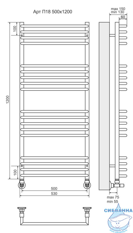 Полотенцесушитель водяной Terminus Арт П16 50х120 (нижнее подключение) (хром)