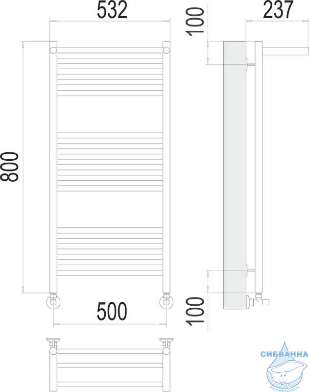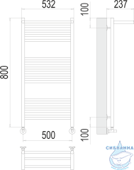Полотенцесушитель водяной Terminus Аврора П16 50х80 с полкой (нижнее подключение)