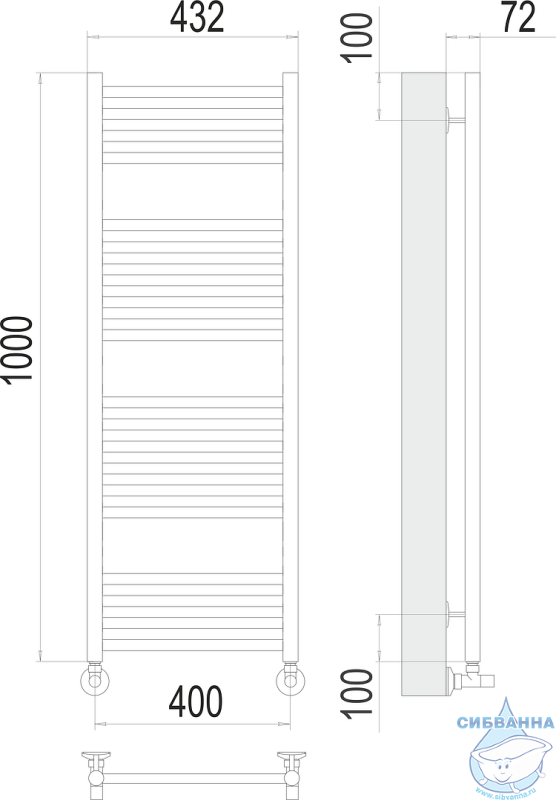 Полотенцесушитель водяной Terminus Аврора П20 40х100 (нижнее подключение)