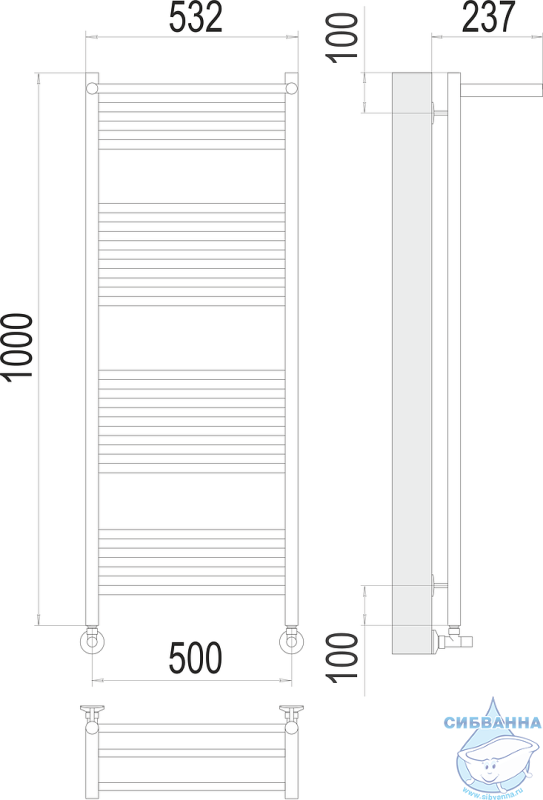 Полотенцесушитель водяной Terminus Аврора П20 50х100 с полкой (нижнее подключение)