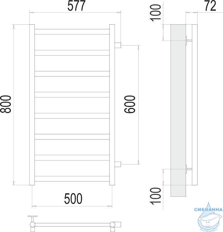 Полотенцесушитель водяной Terminus Аврора П8 50х80 (нижнее подключение) (черный матовый)