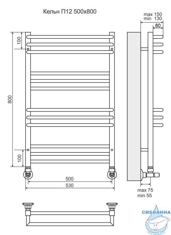 Полотенцесушитель водяной Terminus Кельн П12 50х80 (нижнее подключение) (хром)