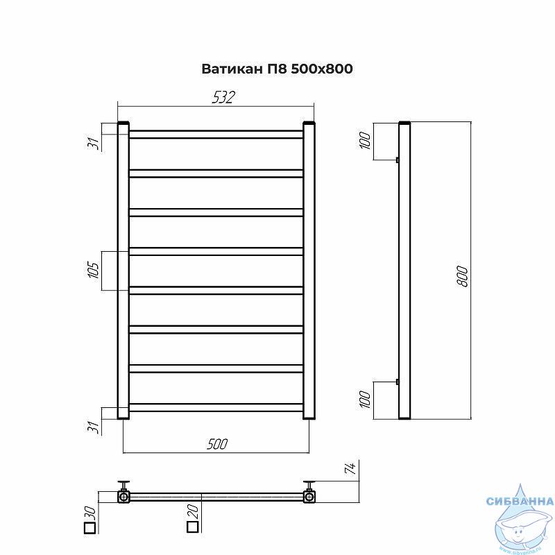 Полотенцесушитель водяной Terminus Ватикан П8 50х80 (нижнее подключение) (белый матовый)